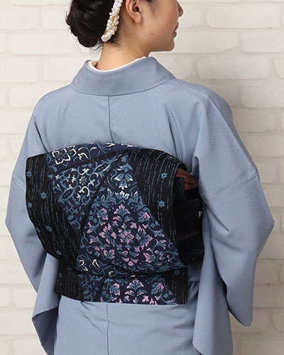 通常は、金銀の入らない名古屋帯や半幅帯を結びます。