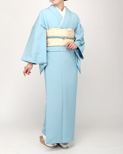 無地一色で染められた着物であり、袋帯か名古屋帯を結ぶのが通常です。
