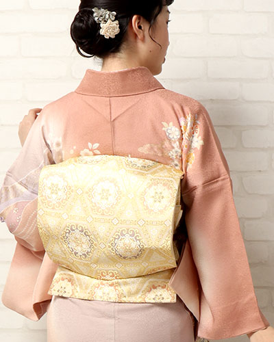 - 帯は、金糸銀糸をあしらってあるような上品で重厚感のある袋帯や名古屋帯を合わせる